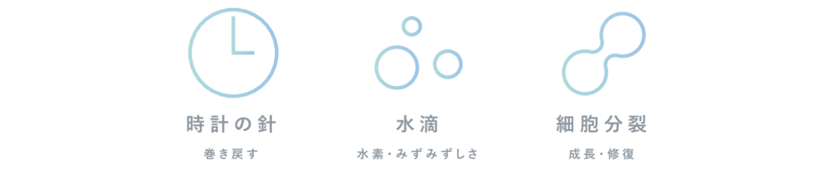 「肌の時間を巻き戻す」という特徴的なイメージを、 下記のモチーフで表現しました。